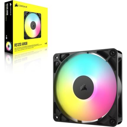 Corsair RS120 ARGB 120mm PWM Fan, Daisy-Chain Connection, Low-Noise, Magnetic Dome Bearing – Single Pack (Black)