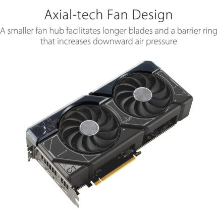 ASUS Dual GeForce RTX™ 4060 Ti fuses dynamic thermal performance with broad compatibility. Advanced cooling solutions from flagship graphics cards — including two Axial-tech fans for maximizing airflow to the heatsink — are packed into the 22.7 cm long, 2.5-slot card, delivering more power in less space.