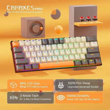 Redragon K644 Caraxes Pro CGO SE 65% 3-Mode Wireless RGB Gaming Keyboard, 61 Keys Hot-Swappable Compact Mechanical Keyboard w/Upgrade Hot-Swap PCB Socket & Creative 1.2X Larger Size, Quiet Red Linear Switch