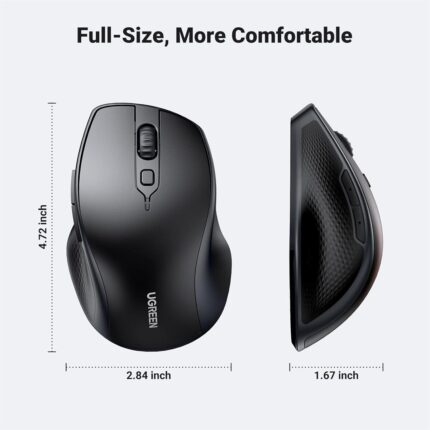 UGREEN vertical mouse is designed with an ergonomic shape that contours the natural curvature of your hand, providing a comfortable and fatigue-free grip.