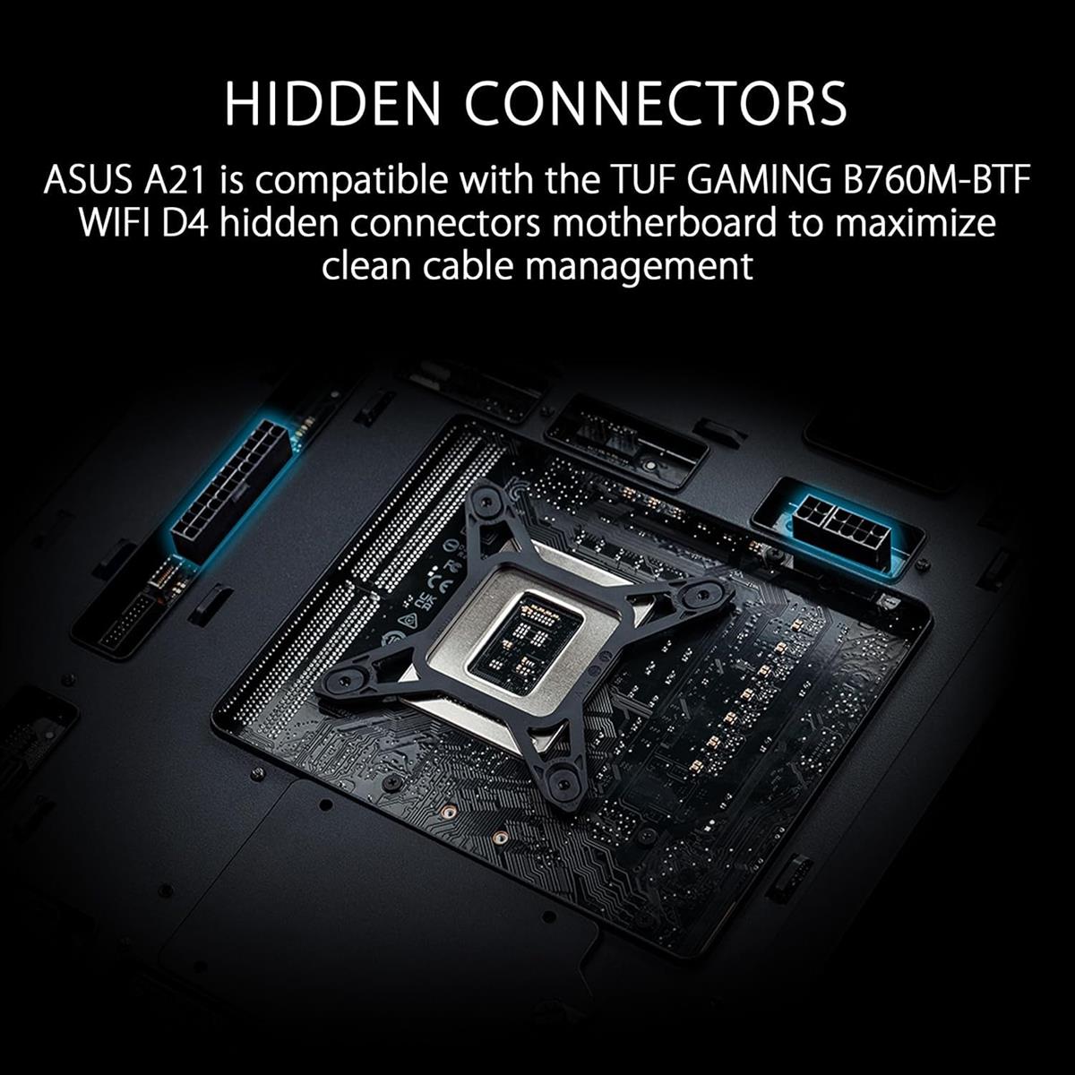 Ample cable management: The A21 provides a compartment behind the motherboard that is 33 mm wide to keep your wiring tucked away and tidy.