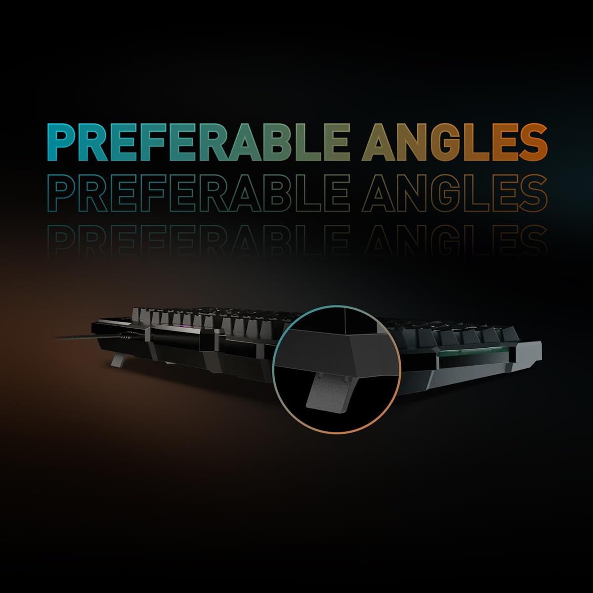 Two keyboard feet support a tilt angle to ensure a more comfortable wrist position during gaming sessions.