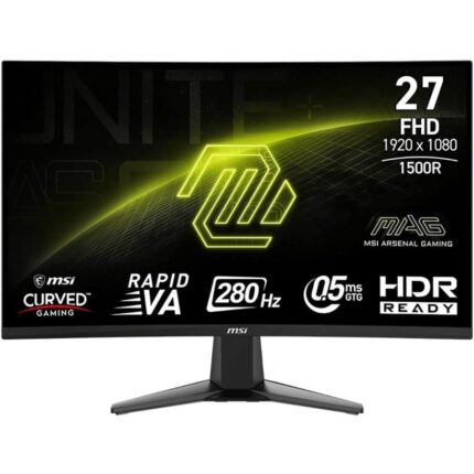 MSI MAG 276CXF 27-inch 1920 x 1080 (FHD) Curved Gaming Monitor, 280Hz, HDMI, DisplayPort, VGA Port, VESA Mountable, Tilt, Speaker, Slim Bezel, 0.5ms, Rapid VA, Black